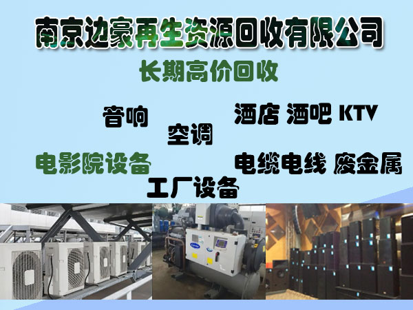 南京边豪再生资源回收常年提供各类回收服务:酒店,宾馆整体设备,厨具,二手厨房设备;KTV,电影院的设备,音箱设备;网吧,电脑办公家具;大小空调,中央空调,螺杆机组;废铜,废铝,各类废金属;电机,变压器,电缆,大小工厂、整厂设备回收;正规的物资回收公司,拥有丰富的回收经验,完善的信息渠道和雄厚的经济实力,是集回收型与贸易型为一体的综合型公司,诚信为本,合理报价,上门回收!欢迎随时联系;